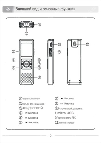 | 21. Корпус, комплект поставки | Легкий, прочный, металлического сплава; диктофон, кабель для зарядки АБ, инструкция. |