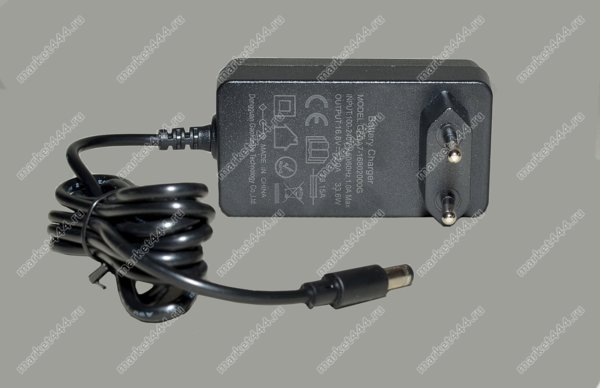 В комплекте поставки имеется блок для зарядки АБ. Напряжение/ток зарядки 16.8В/2А. При зарядке индикатор на блоке горит красным, по окончании зеленым цветом. Внимание важно!! Заряжать только от оригинально блока.